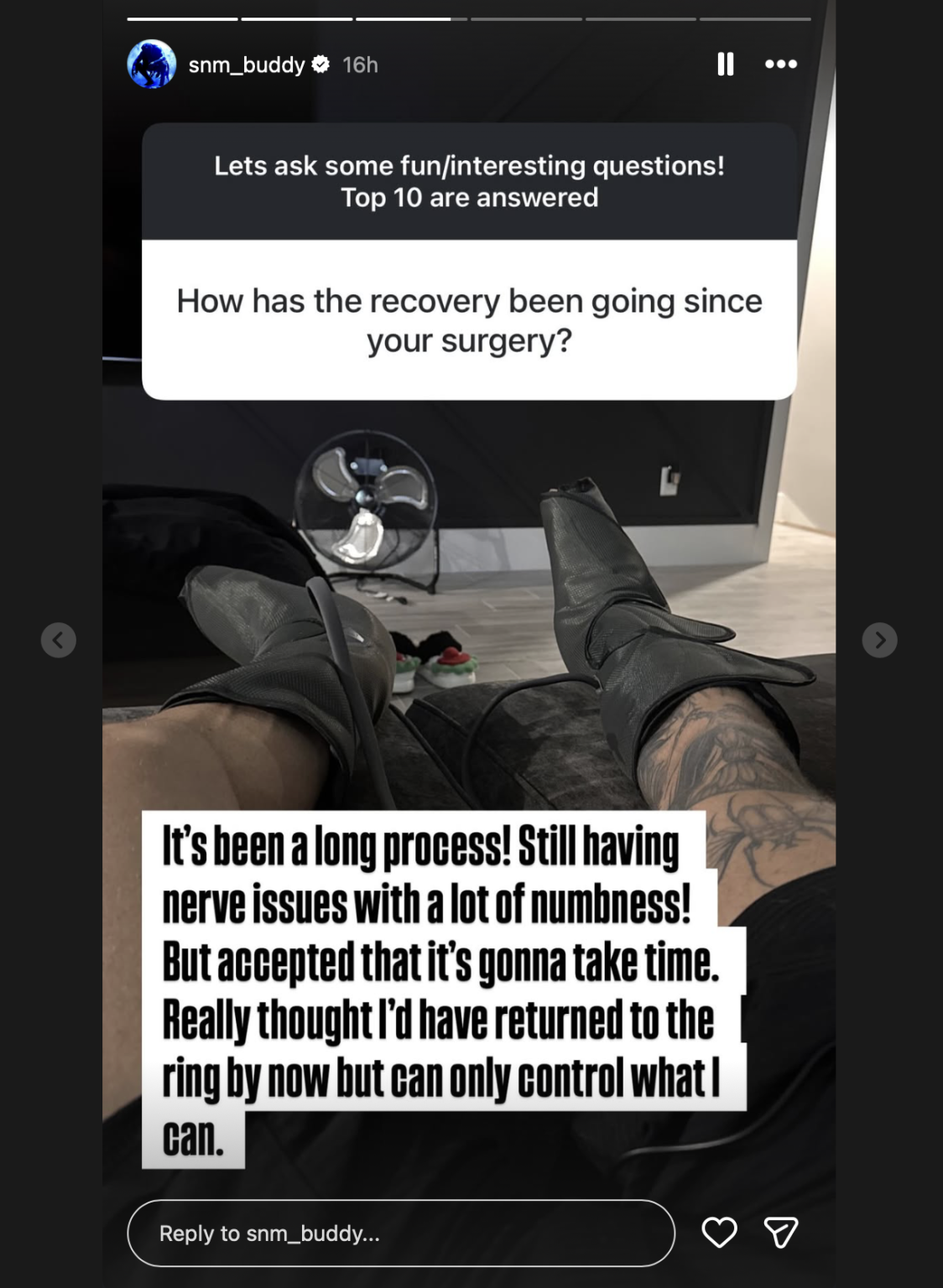 “It’s been a long process! Still having nerve issues with a lot of numbness! But accepted that it’s gonna take time. Really thought I’d have returned to the ring by now but can only control what I can.”