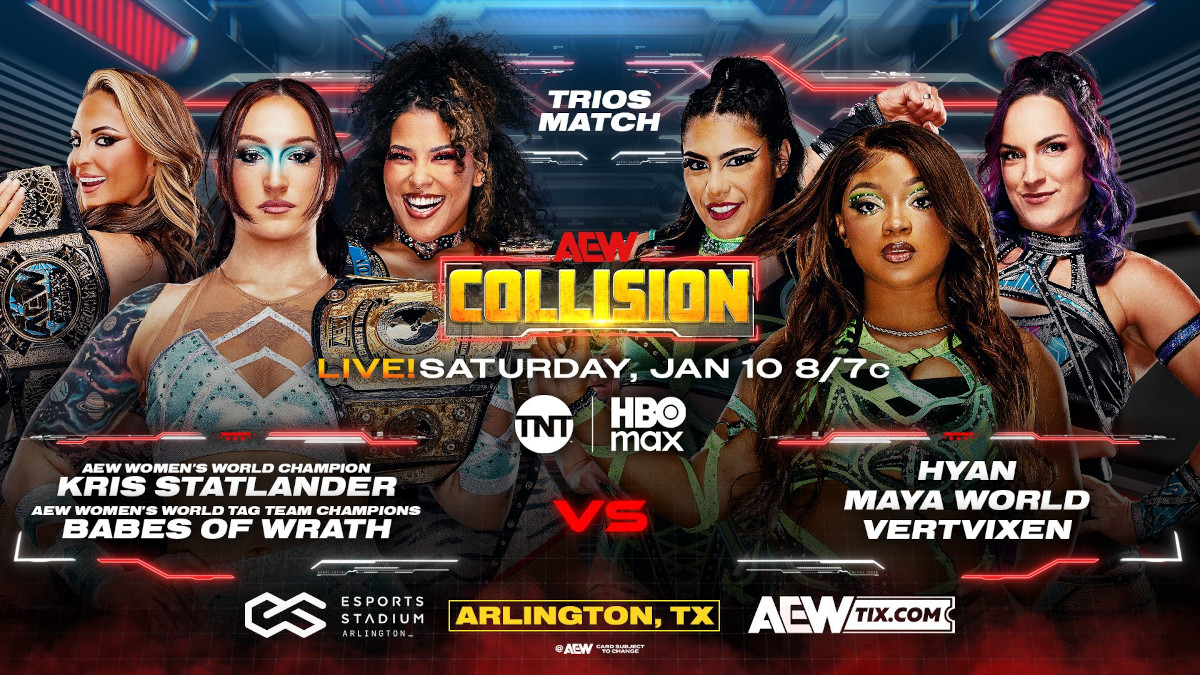 This newly updated match announced was a Trios match of Kris Statlander & Babes of Wrath (Willow Nightingale & Harley Cameron) vs. Hyan, Maya World, & Vertvixen.