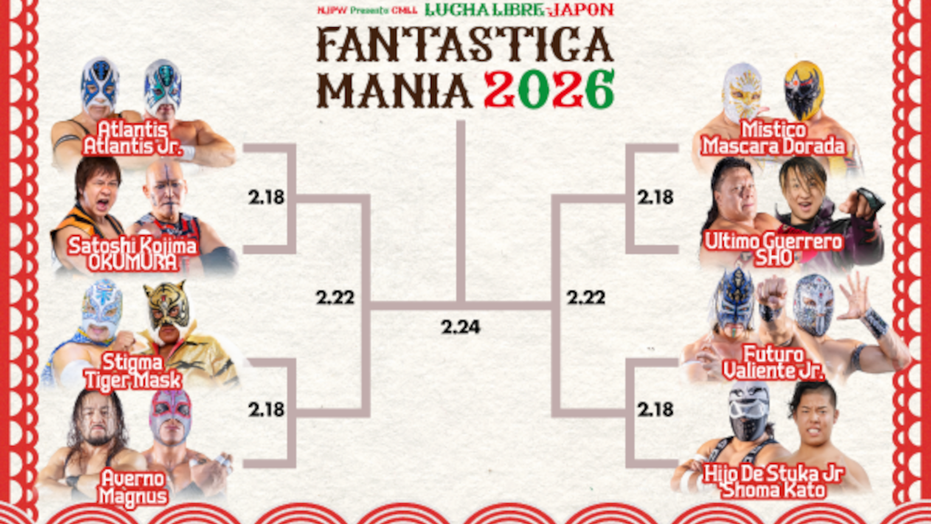 New Japan Pro Wrestling announce the full field of teams and bracket for the Fantasticamania Tag Team tournament at this year’s NJPW x CMLL Fantasticamania 2026 tour, which takes place from February 18-27 in Japan.