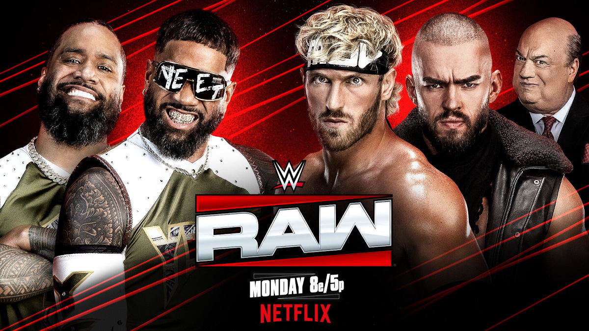 Jimmy Uso and Jey Uso will put the World Tag Team Title on the line against Theory and Paul, Monday on Raw at 8 ET/5 PT on Netflix.