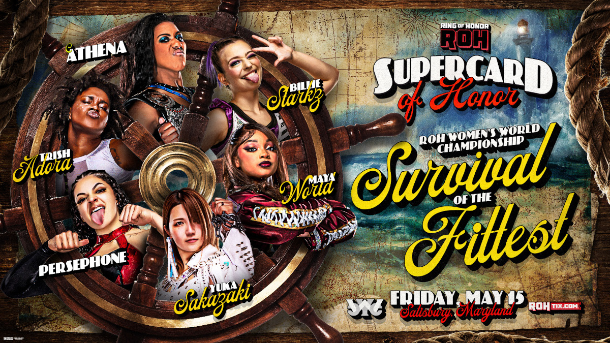 The #ROH Women's World Title Survival of the Fittest match is now set for Supercard of Honor!@AthenaPalmer_FG (c) vs. @MayaWorldd vs. @TrishAdora202 vs. Persephone vs. @YukaSakazaki vs. @BillieStarkz!