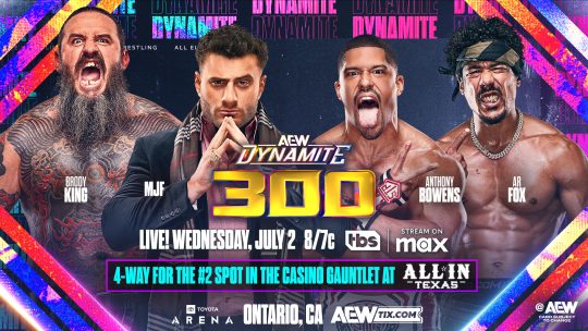 AEW: Men’s Casino Gauntlet Qualifier Four-Way Match Set for 7/2 AEW Dynamite 300 Show, FTR vs. The Outrunners Set for 7/5 AEW Collision 100 Show, More News