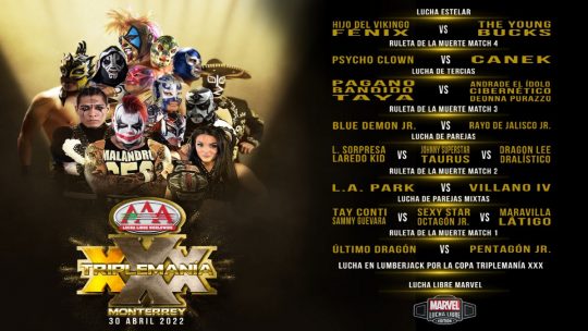 Various: Full Card for AAA Triplemania XXX: Monterrey, Sat. NJPW Strong Card, New Trademarks, Indies